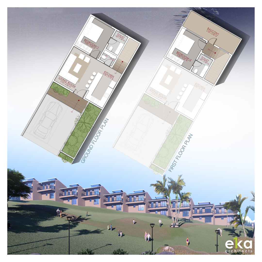 A conceptual design was presented for a eco-retreat with Row Houses and Semi-Detached Bungalows on the plot located on the banks of River Bhatsa with scenic view of the River Back-waters and Dam. The design was proposed as a second home for buyers away from the city hustle-bustle.
