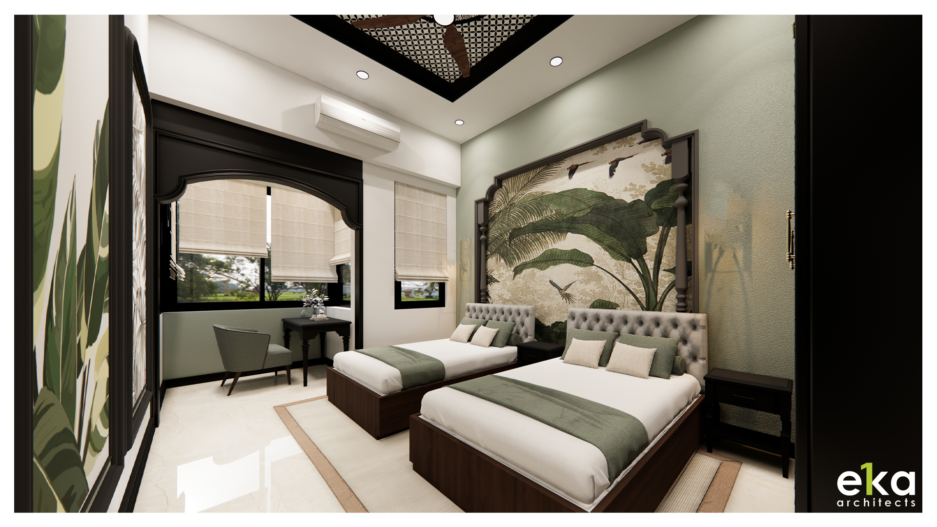 The design includes 10 guest rooms, VIP suite rooms, Male & Female Dormitories, Cafeteria, administration office and outdoor landscape design.