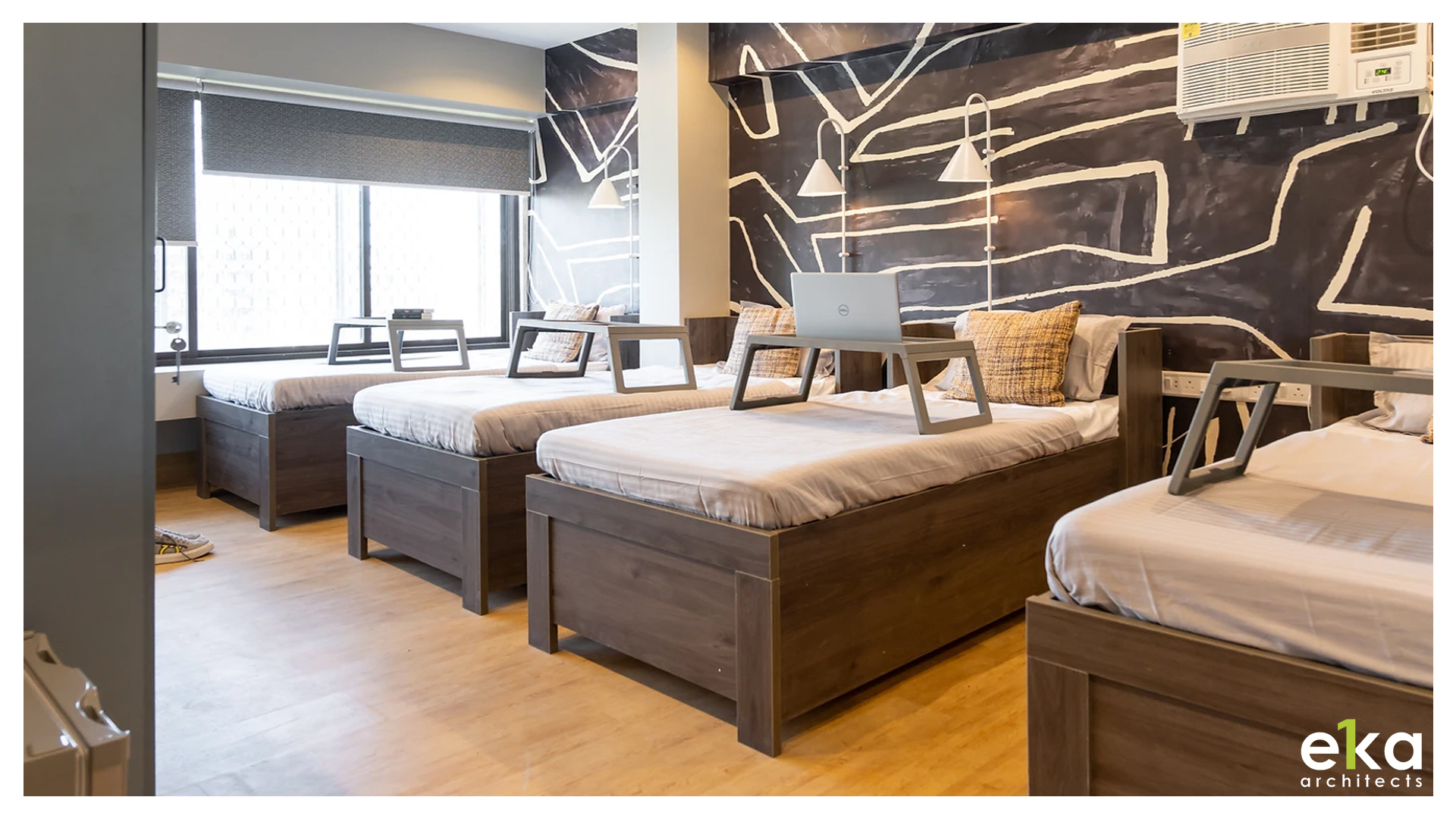 The project is designed as a hostel in an existing G+6 Building with Rooms on each floor of various configurations. The rooms are designed to optimize space with all required amenities for students & Professionals. The design includes a recreation area, well designed transition spaces and outdoor landscape.