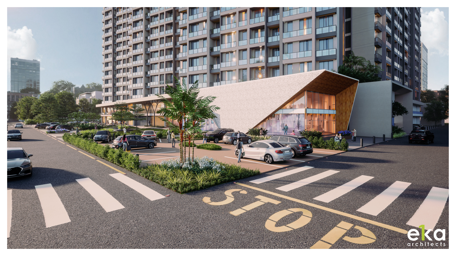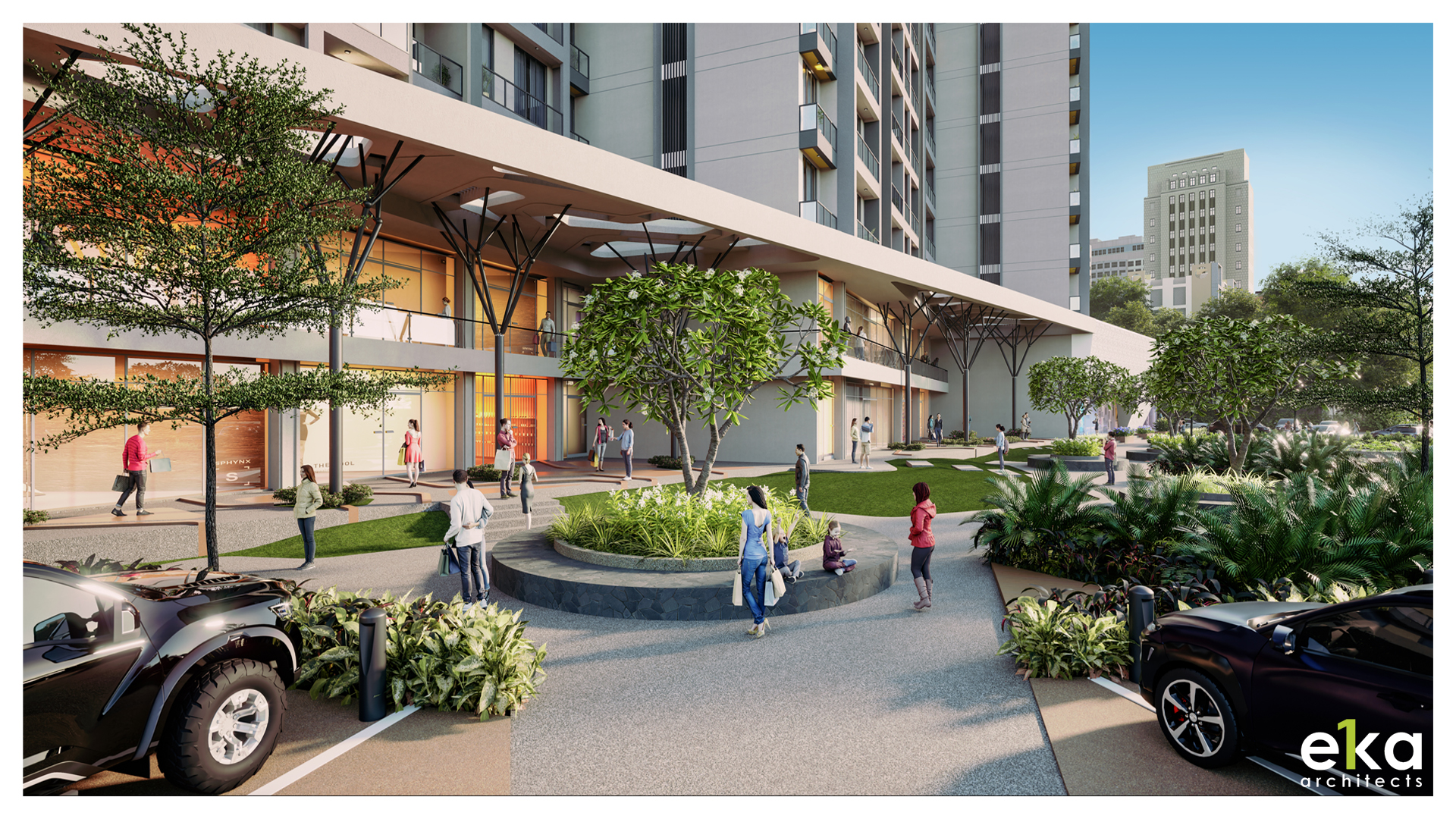 The shop line is envisioned with premium brand franchise shops. It is one of a kind in the whole of Vasai neighborhood which opens up to be a Urban Street plaza promoting diversity amongst users who will in turn be prolific for the shop owners and other amenities proposed. The Shop front plaza is designed with exclusive landscape features and Car Parking provision for customers.