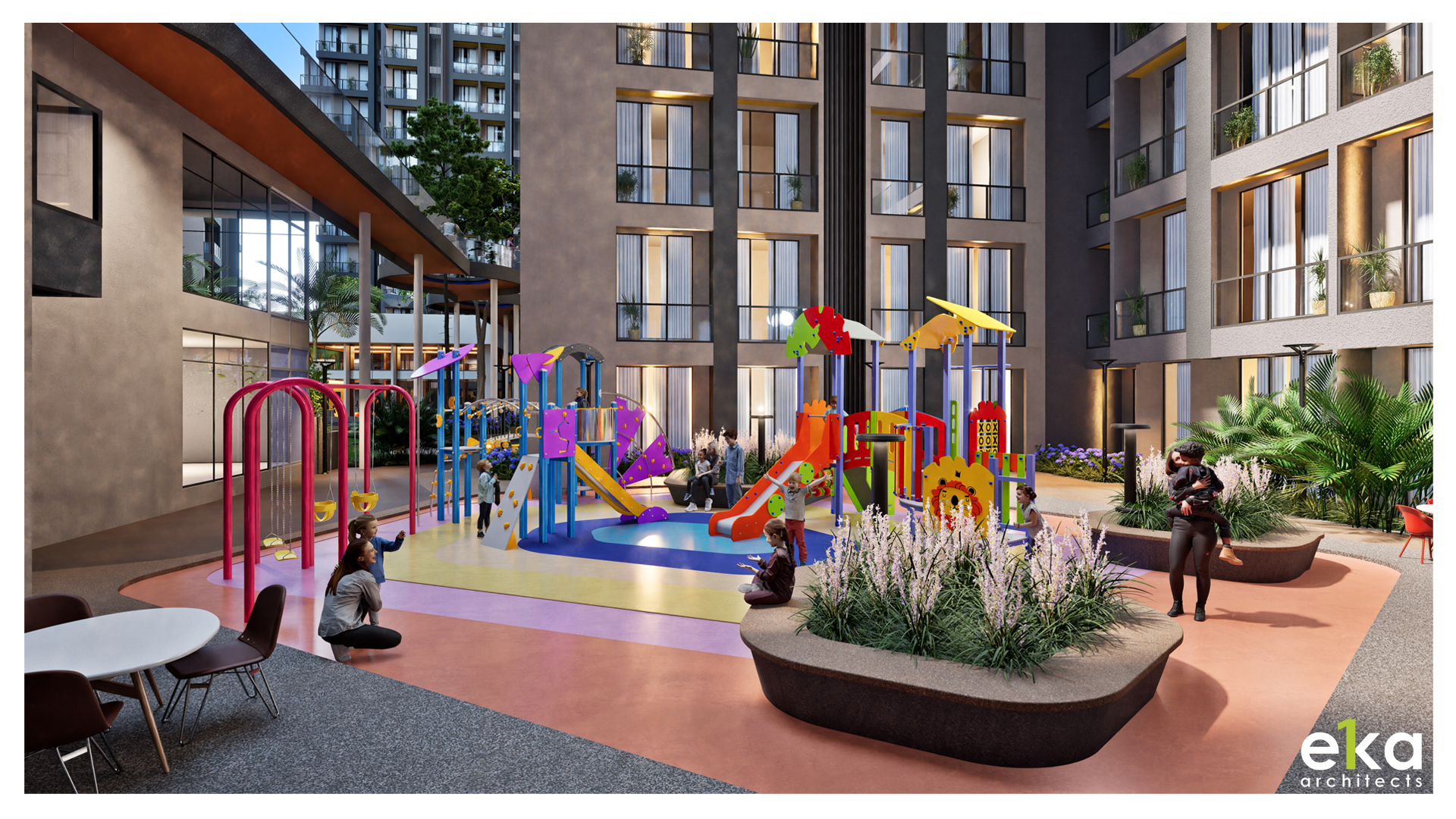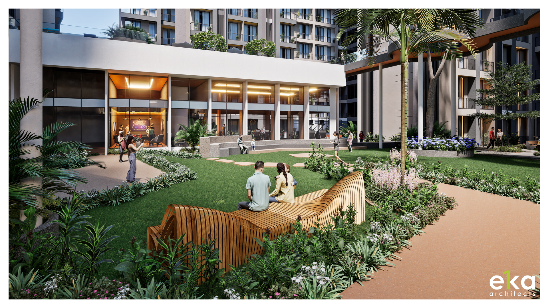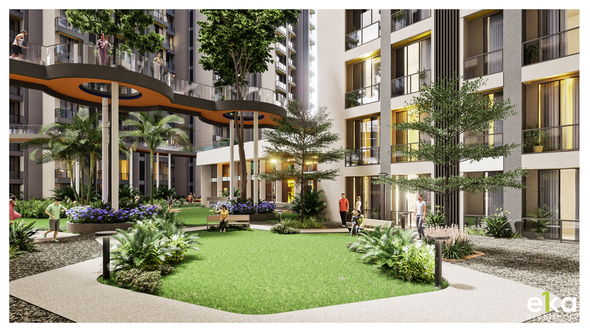 AKHAND- a high residential complex with top notch amenities and a recreational retreat in the form of podium landscape and shopping complex designed for the 1200 residential units in total is an urban oasis in the developing town of Vasai.
